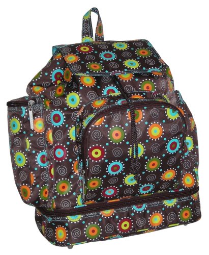 The Kalencom Backpack Diaper Bag - Doodle Bugs has a funky patterned durable fabric exterior with a practical backpack structure. Designed for overnight trips, this bag features a roomy interior and plenty of extras. It measures 13.5L x 7.5W x 16H inches and has a zip-down changing station with a large padded changing pad. Complete with a pouch for soiled clothing, a zippered feeding compartment, an exterior gathered pocket, and a Thinsulate insulated bottle pocket.About Kalencom Founded in 1971