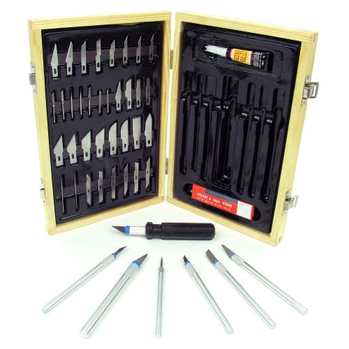 - Features: Use to cut, scratch, etch, scrape, layout, and make models Each blade, handle, and stone has its own recessed holding place in case
